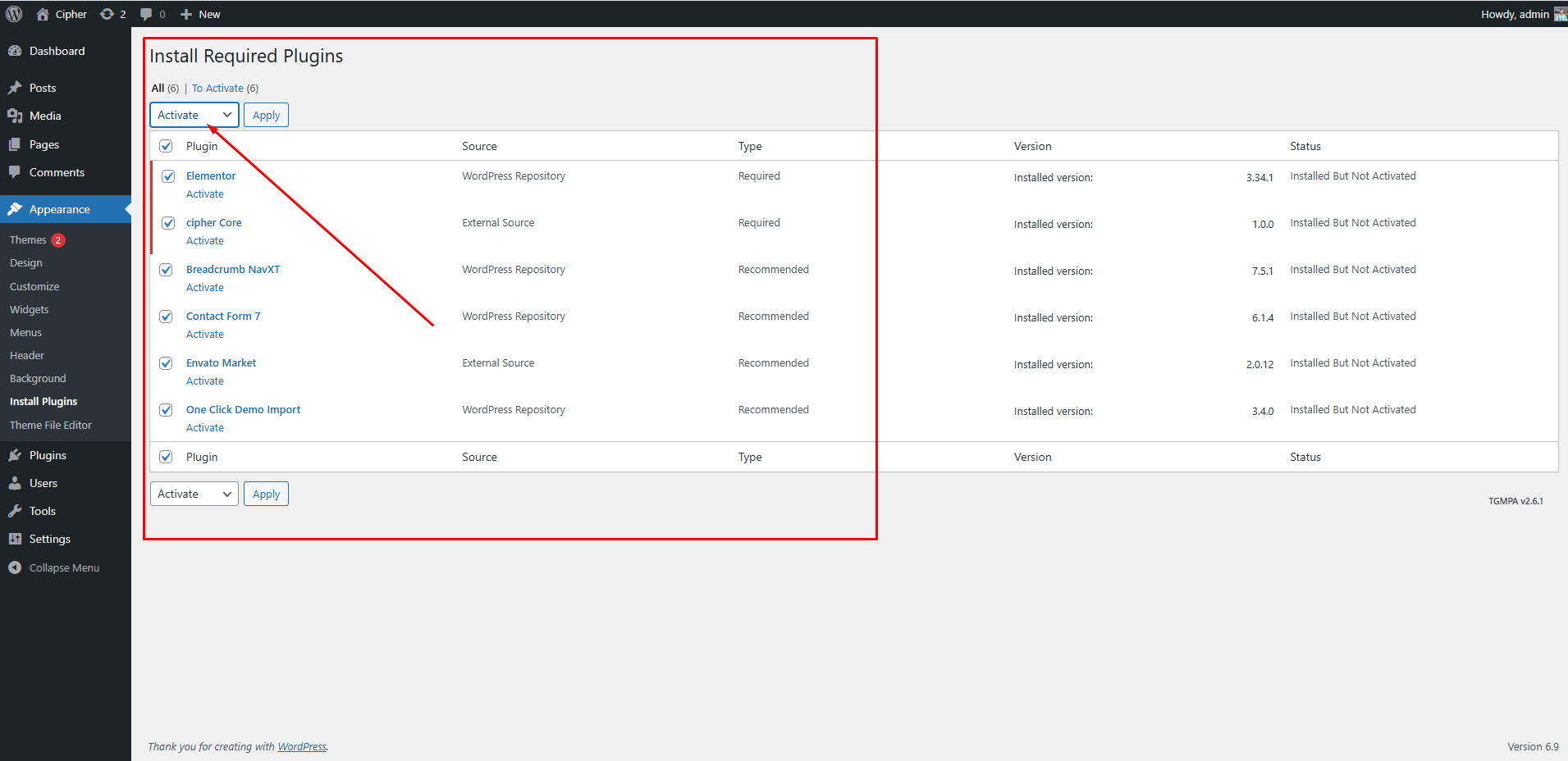 required plugins.Select all and installSelect all and Activate